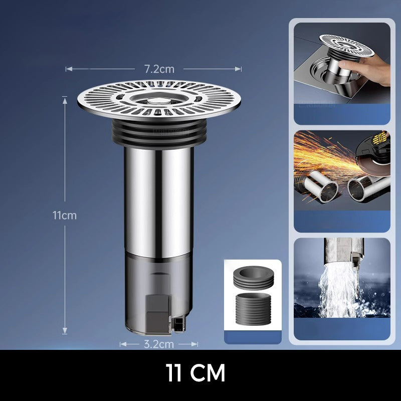 AMPLIA COMPATIBILIDAD: Compatible con tamaños de tubería estándar, este desagüe de suelo es versátil y adecuado para la mayoría de las configuraciones de baño, por lo que es una opción práctica para cualquier hogar.