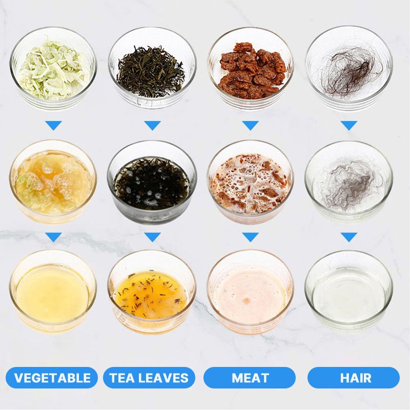 Función Potente: Puede disolver rápidamente obstrucciones de tuberías como pelos, papel, restos de jabón, verduras, frutas, restos de comida, grasa, carne y materia orgánica.