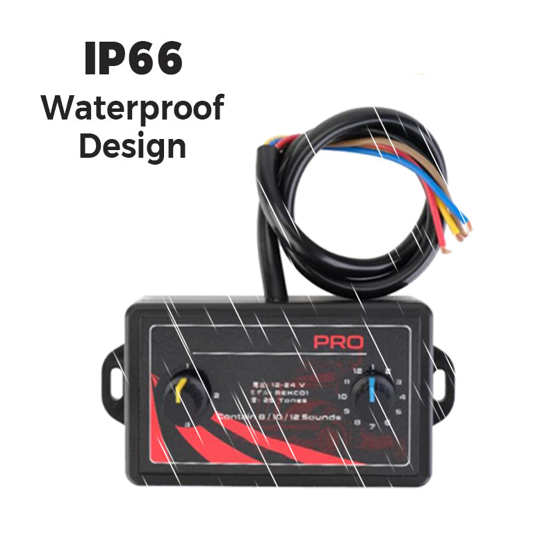 SINTONIZACIÓN DE PRECISIÓN CON PERILLA DOBLE - Equipado con dos perillas independientes, una para ajustar la velocidad del sonido y la otra para el ritmo, lo que permite una personalización precisa de los tonos de la bocina para cada situación de conducción.