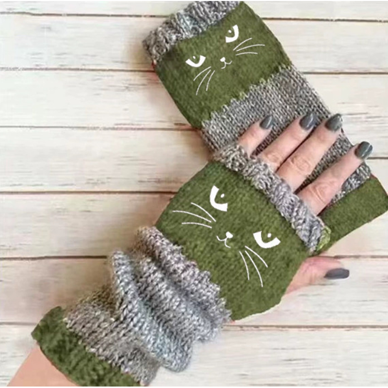 Guantes sin dedos de punto con estampado de gatos
