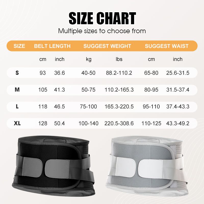 El paquete incluye: 1 cinturón de soporte lumbar para hombres y mujeres.