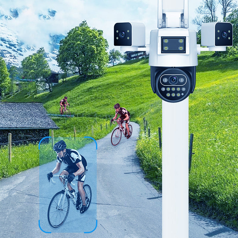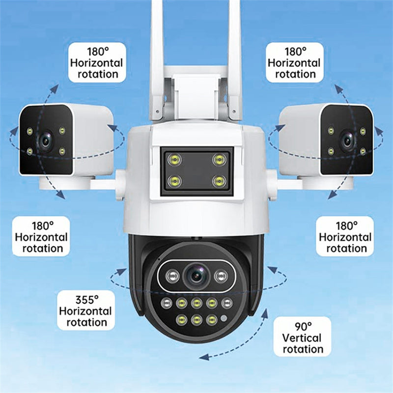 PROTECCIÓN DE VIGILANCIA TOTAL DE 360° - Equipada con tres lentes (dos de enfoque fijo y una lente PTZ), esta cámara proporciona una vigilancia total de 360° con una rotación horizontal de 355° y vertical de 90°, lo que garantiza una seguridad total sin puntos ciegos.
