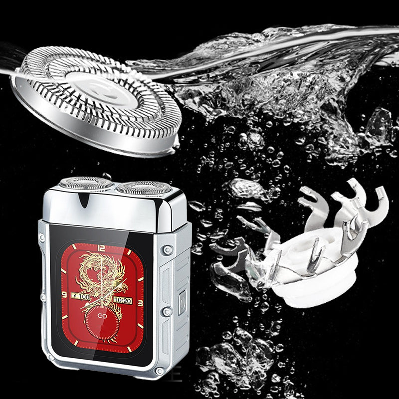 PANTALLA TÁCTIL MULTIFUNCIÓN : la innovadora pantalla LED se convierte en un compañero inteligente con monitorización de la frecuencia cardiaca, notificaciones, minijuegos e incluso una calculadora. Controla el tiempo de afeitado mientras te mantienes conectado: la tecnología se une al cuidado personal en un dispositivo elegante.