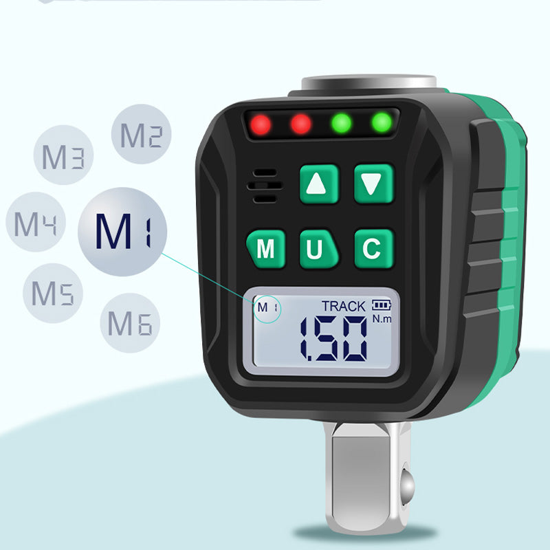 MODO DE MEMORIA PREDEFINIDA: Con capacidad para almacenar hasta 500 conjuntos de datos, este adaptador de par incluye 6 valores predefinidos programables (M1-M6). Esta función permite recuperar de forma rápida y cómoda los ajustes de par utilizados con frecuencia, lo que optimiza el flujo de trabajo para diversas aplicaciones.