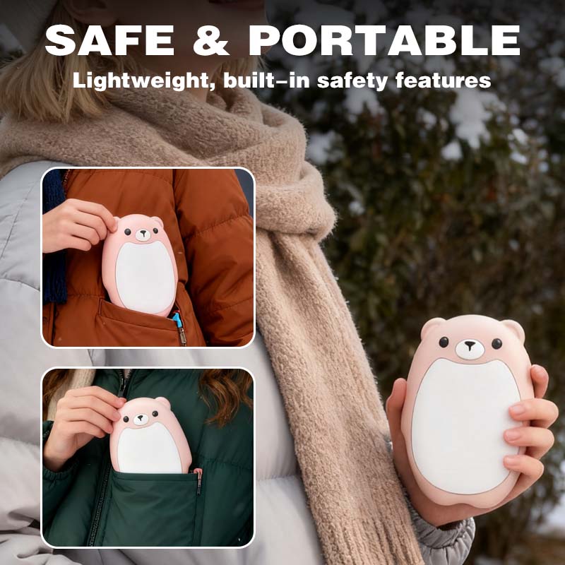 DISEÑO DE OSO BONITO: Adorables calentadores con forma de oso y acabado suave que añaden un toque divertido a tu rutina invernal. Perfectos como regalo para amigos, niños o para ti mismo.