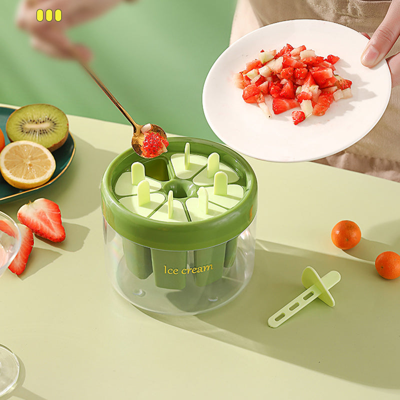 NUEVO DISEÑO DE MOLDE PARA PALITOS - Los moldes para paletas están diseñados con 8 agujeros y 8 palitos reutilizables y vienen con una hielera redonda para mantener fríos los palitos. El tamaño del molde es perfecto para niños, ahorra materiales, es fácil de limpiar, seguro de usar y se puede reutilizar durante mucho tiempo.