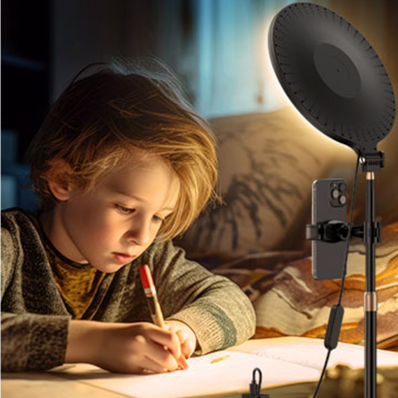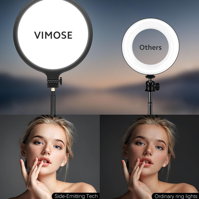 Superficie de luz sobredimensionada mejorada:< El gran anillo de 21,5 cm de diámetro proporciona una iluminación más amplia y uniforme que los anillos de luz estándar. La matriz de LED difusa crea una luz favorecedora que envuelve al sujeto, eliminando las zonas oscuras.