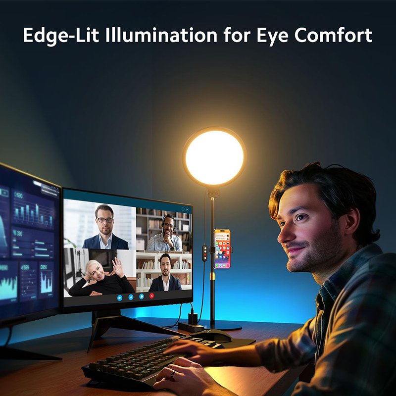 ILUMINACIÓN PROFESIONAL EN 3 TONOS:< Cambia entre las temperaturas de color cálida (2700K), natural (4000K) y fría (6500K) para adaptarla perfectamente a tu entorno. El ajuste de brillo de 10 niveles permite un control preciso desde un suave resplandor ambiental hasta una iluminación de estudio para un maquillaje, fotografía o videollamadas impecables.