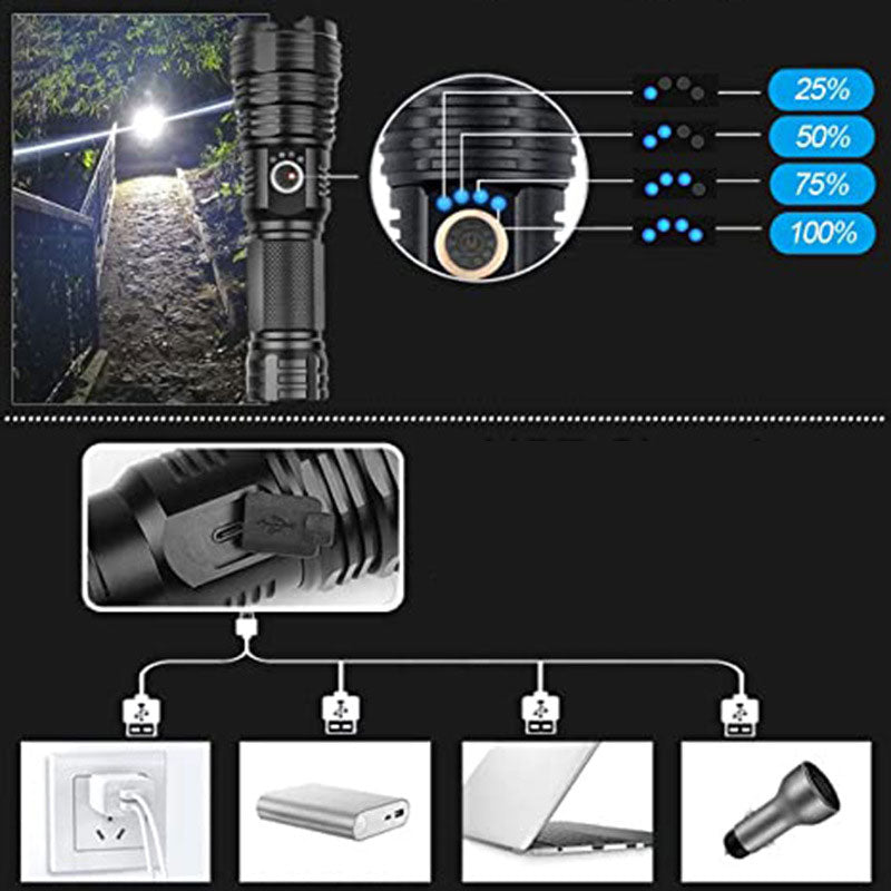 Set de Linternas Recargables Impermeables Súper Brillantes con Zoom
