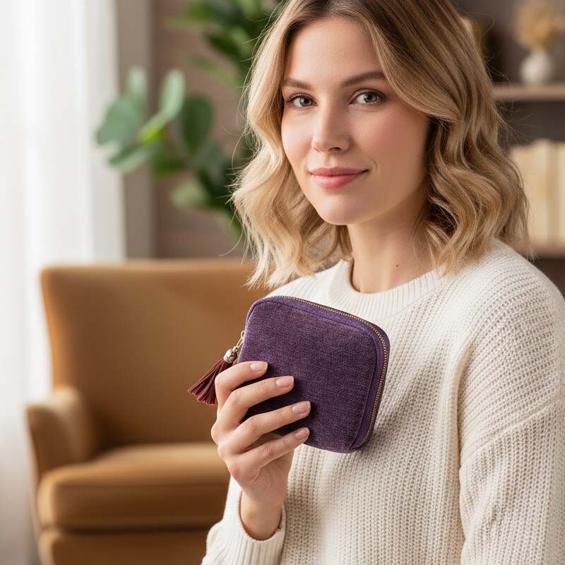 CREMALLERA CON BORLAS ELEGANTE : las elegantes borlas añaden un toque de sofisticación a la vez que proporcionan un cierre seguro y suave. Garantizan que tus joyas permanezcan a salvo dentro de la bolsa, combinando moda y funcionalidad.
