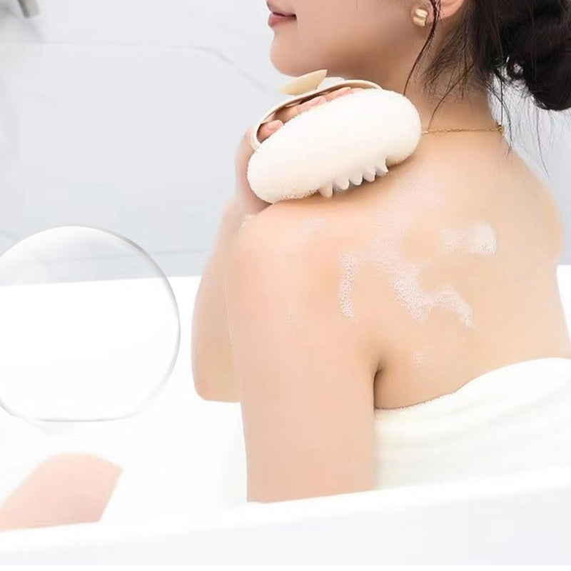 REUTILIZABLE Y DURADERA: Fabricada con materiales duraderos y de alta calidad, esta esponja de baño está diseñada para durar y resistir un uso regular. La ventosa facilita su almacenamiento y ayuda a mantenerla seca entre usos.