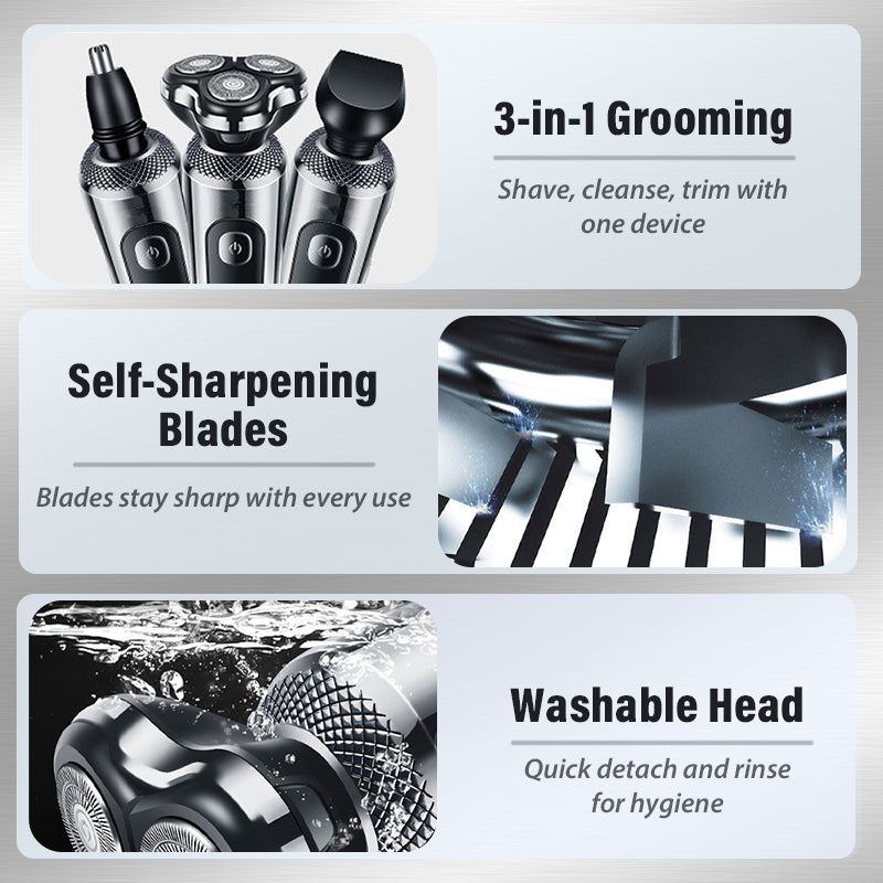 Afeitadora eléctrica flotante 3D 3 en 1 para hombre