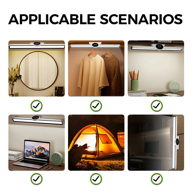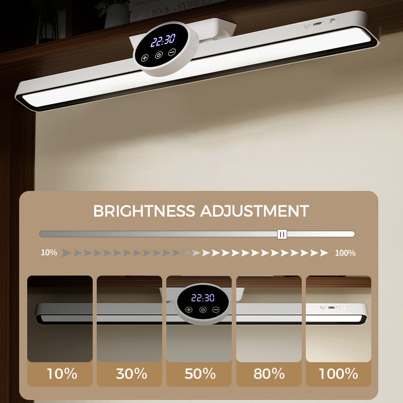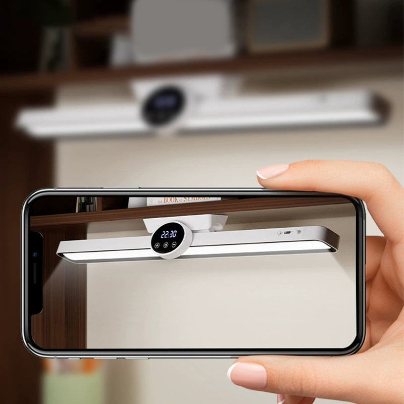 DUAL FUNCIONALIDAD: Esta versátil barra de luz ofrece una excelente iluminación y un reloj incorporado, proporcionando un cómodo control de la hora mientras trabaja o estudia, mejorando a la perfección la funcionalidad de su espacio de trabajo.